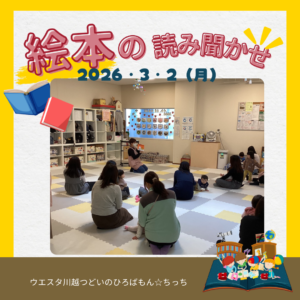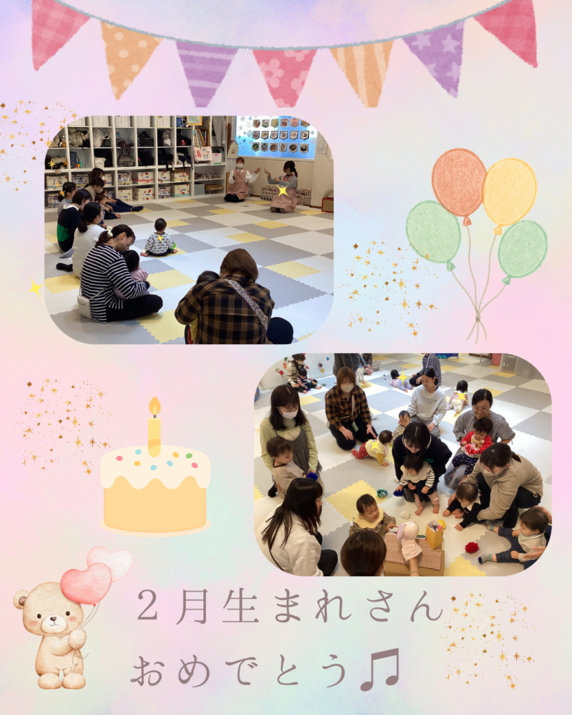 2月お誕生会(午前) 2026 2/24 今日の様子 講座・イベント 2026年2月24日 9人のお友だちをたくさんのお友だちでお祝いしました🎂元気に大きくなってくれてありがとう❤️みんなもママ&パパもおめでとう🎉 (かずみちゃん、まいちゃん、みゆきちゃん、あきちゃん) 今日の様子 講座・イベント この記事が気に入ったら フォローしてね! Follow @monchi_hiroba Follow Me よかったらシェアしてね! URLをコピーしました! 2/17「0歳1歳向け離乳食と歯の講座」 2月もんちお誕生日会 この記事を書いた人 nw_monchi ウェスタ川越つどいの広場(愛称:もん☆ちっち)はNPO法人川越子育てネットワークが受託し、運営しています。気が向いたときに、子どもと一緒にふらっと遊びにいきたくなる場所。子育て経験のあるママ&パパスタッフが、みなさんをお待ちしています。 関連記事 3/2(月) 午前中の様子 2026年3月2日 2月もんちお誕生日会 2026年2月24日 2/17「0歳1歳向け離乳食と歯の講座」 2026年2月17日 2/10(火)抱っこ・おんぶ紐相談会 2026年2月10日 2/2(月)午前中の様子 2026年2月2日 1/27(火) 午後 お誕生会 2026年1月27日 1/27(火)1月お誕生日会午前中 2026年1月27日 1/22(木)ハーバリウム(植物標本)制作講座を開催しました。 2026年1月22日 カテゴリー お知らせ その他 予約状況 今日の様子 講座・イベント