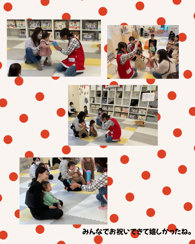 お誕生会では、かずみちゃんの手遊びをじーっと見つめてみんな楽しんでくれました。