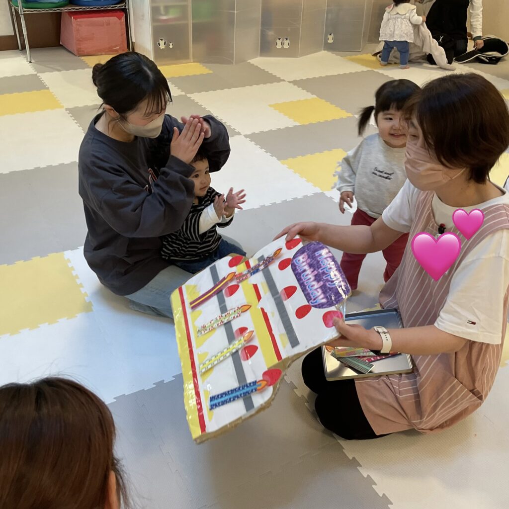 3/24(火)お誕生日会(午前) 2026 3/24 今日の様子 講座・イベント 2026年3月24日 3月生まれのお友だち、お誕生日おめでとう🎉ママもパパもおめでとう🎉みんなみんな嬉しいね。これからも成長を楽しみにしているね。(まいちゃん、まさよちゃん、あやのちゃん) 今日の様子 講座・イベント この記事が気に入ったら フォローしてね! Follow @monchi_hiroba Follow Me よかったらシェアしてね! URLをコピーしました! 3/18(水) 午後の様子 3月お誕生会(午後) この記事を書いた人 nw_monchi ウェスタ川越つどいの広場(愛称:もん☆ちっち)はNPO法人川越子育てネットワークが受託し、運営しています。気が向いたときに、子どもと一緒にふらっと遊びにいきたくなる場所。子育て経験のあるママ&パパスタッフが、みなさんをお待ちしています。 関連記事 卒業おめでとう 2026年3月31日 3月お誕生会(午後) 2026年3月24日 3/18(水) 午後の様子 2026年3月18日 3/12 紙芝居講座を開催しました。 2026年3月12日 3/2(月) 午前中の様子 2026年3月2日 2月もんちお誕生日会 2026年2月24日 2月お誕生会(午前) 2026年2月24日 2/17「0歳1歳向け離乳食と歯の講座」 2026年2月17日 カテゴリー お知らせ その他 予約状況 今日の様子 講座・イベント