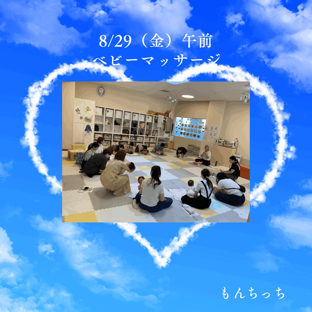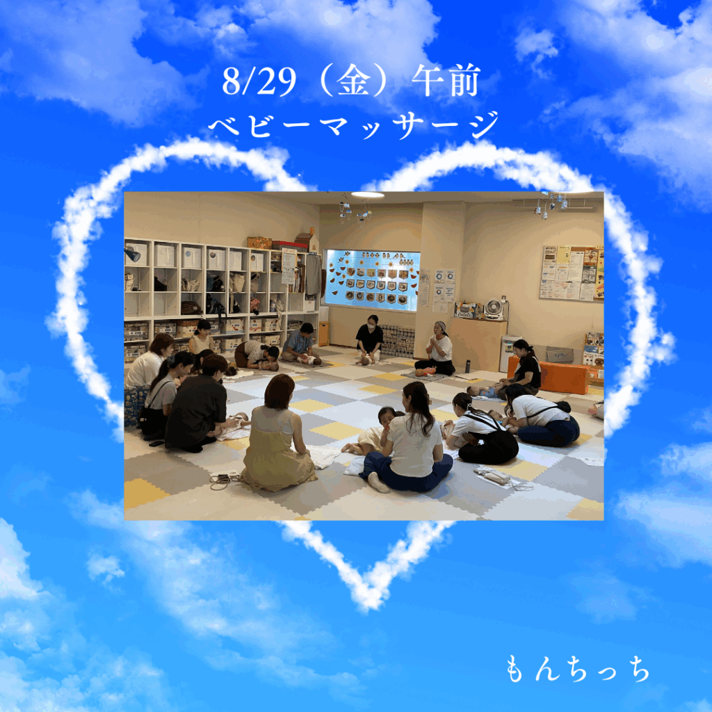 8/29(金)ベビーマッサージ講座 2025 8/29 今日の様子 講座・イベント 2025年8月29日 ベビーマッサージ講座を開催しました。ゆったりした時間となりました。 (あーちゃん、たきちゃん、まいちゃん) 今日の様子 講座・イベント この記事が気に入ったら フォローしてね! Follow @monchi_hiroba Follow Me よかったらシェアしてね! URLをコピーしました! 8/28 ウォータービーズ制作講座 9/1(月)今日のもんち この記事を書いた人 nw_monchi ウェスタ川越つどいの広場(愛称:もん☆ちっち)はNPO法人川越子育てネットワークが受託し、運営しています。気が向いたときに、子どもと一緒にふらっと遊びにいきたくなる場所。子育て経験のあるママ&パパスタッフが、みなさんをお待ちしています。 関連記事 2/2(月)午前中の様子 2026年2月2日 1/27(火) 午後 お誕生会 2026年1月27日 1/27(火)1月お誕生日会午前中 2026年1月27日 1/22(木)ハーバリウム(植物標本)制作講座を開催しました。 2026年1月22日 1/20わらべうた講座のようす 2026年1月20日 1/14午後の様子です 2026年1月14日 1/8(木)今日のもんちっち 2026年1月8日 12/24(水)午後の様子 2025年12月24日 カテゴリー お知らせ その他 予約状況 今日の様子 講座・イベント