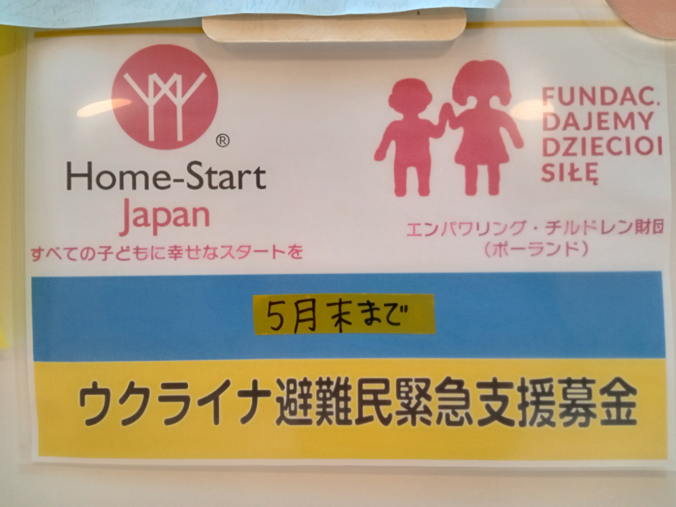 ウクライナから避難されている方へ向けて、もんちっちで募金箱を設置しています。